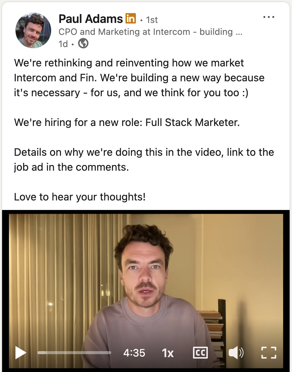 He introduced a new full stack marketer role, and explained why the old rhythm of marketing doesn’t match a world where products evolve weekly and demos matter more than narratives.