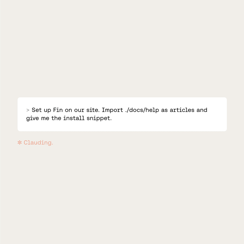 The Fin CLI is built for Agents and can be launched by a single prompt. It signs up to Intercom and Fin, configures the Messenger, pulls in your help content, and sets it live. It also returns contextual feedback to the Agent at each step – what to check, what to set up next, and where to go if something isn’t working.