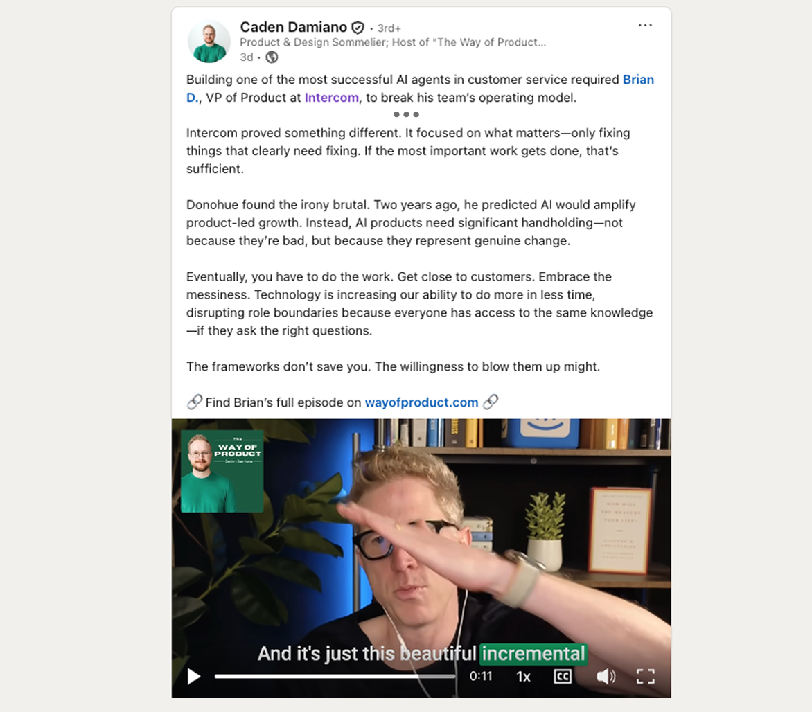 , went on “Way of Product” to describe how building Fin forced Intercom to “break” its old operating model and align the entire company around one goal: increasing AI resolution rate.Listen to the full interview above or view the TLDR snippet on LinkedIn.