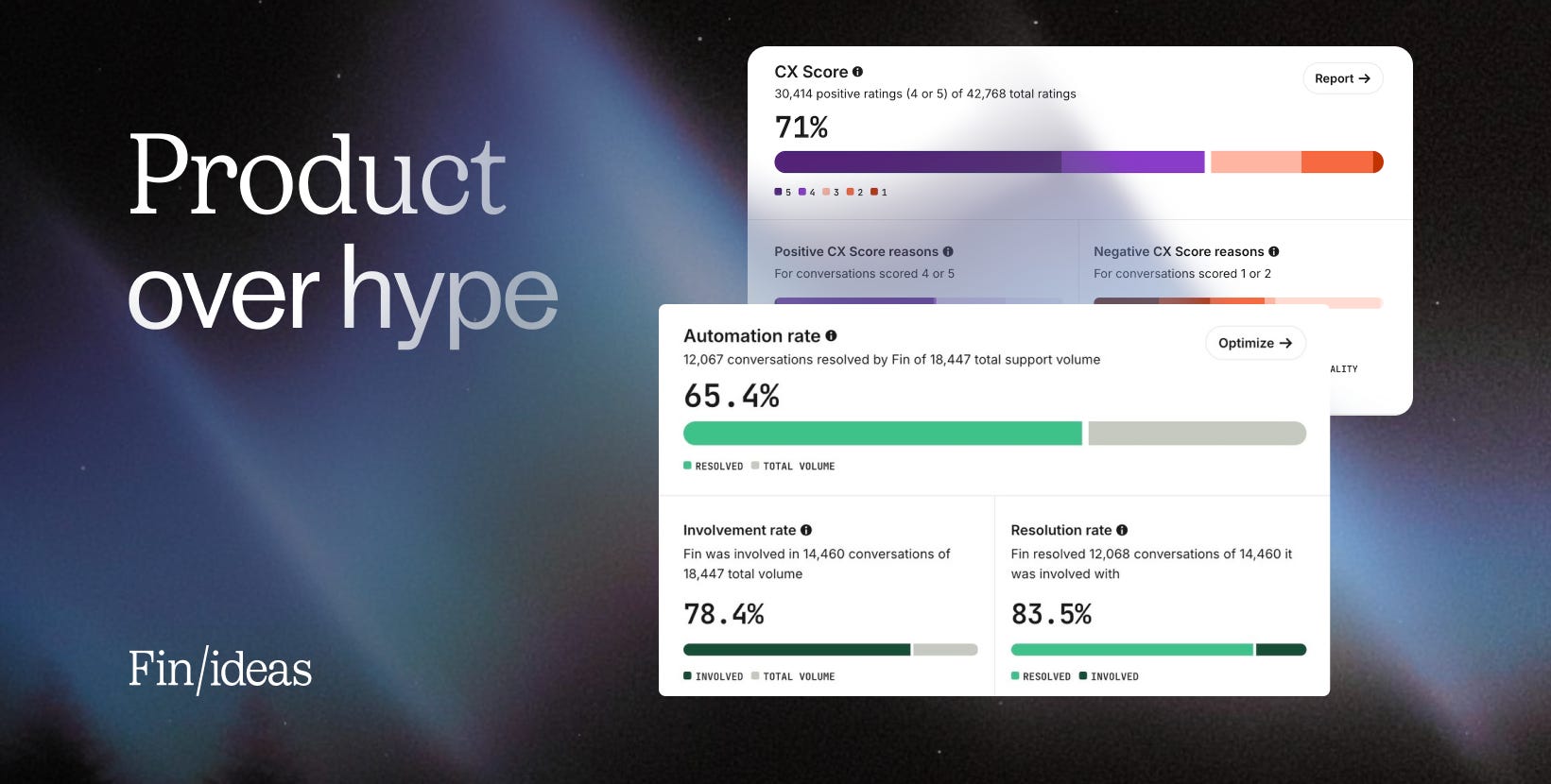 The new Fin Performance Dashboard went live this week. And as Paul said in his post, “From a code POV, it’s not the biggest change. But from a mindset POV, it is a huge change. What we’re showing here is two things that need to be considered together when designing AI Agents in any category.”
