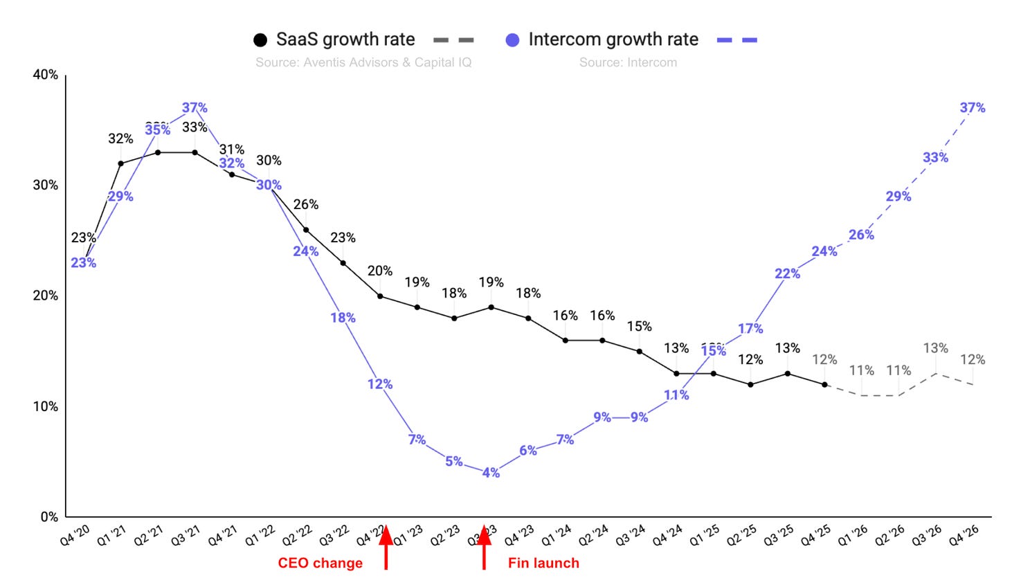 For anyone in this industry, particularly if you’ve been in it for a decade or more, you’ll know that the chart above has essentially never been seen before. It’s so strange, it’s been hard for us all to believe. For everyone else, please take my word for it that what just happened at Intercom is kind of insane.