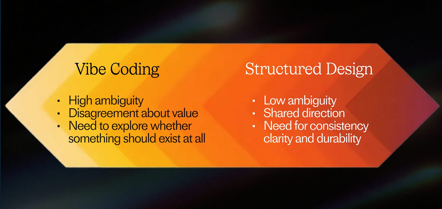 One of the biggest mistakes I see is treating vibe coding as either a default or a novelty. In reality, choosing when to vibe code is becoming a new dimension of design judgement.