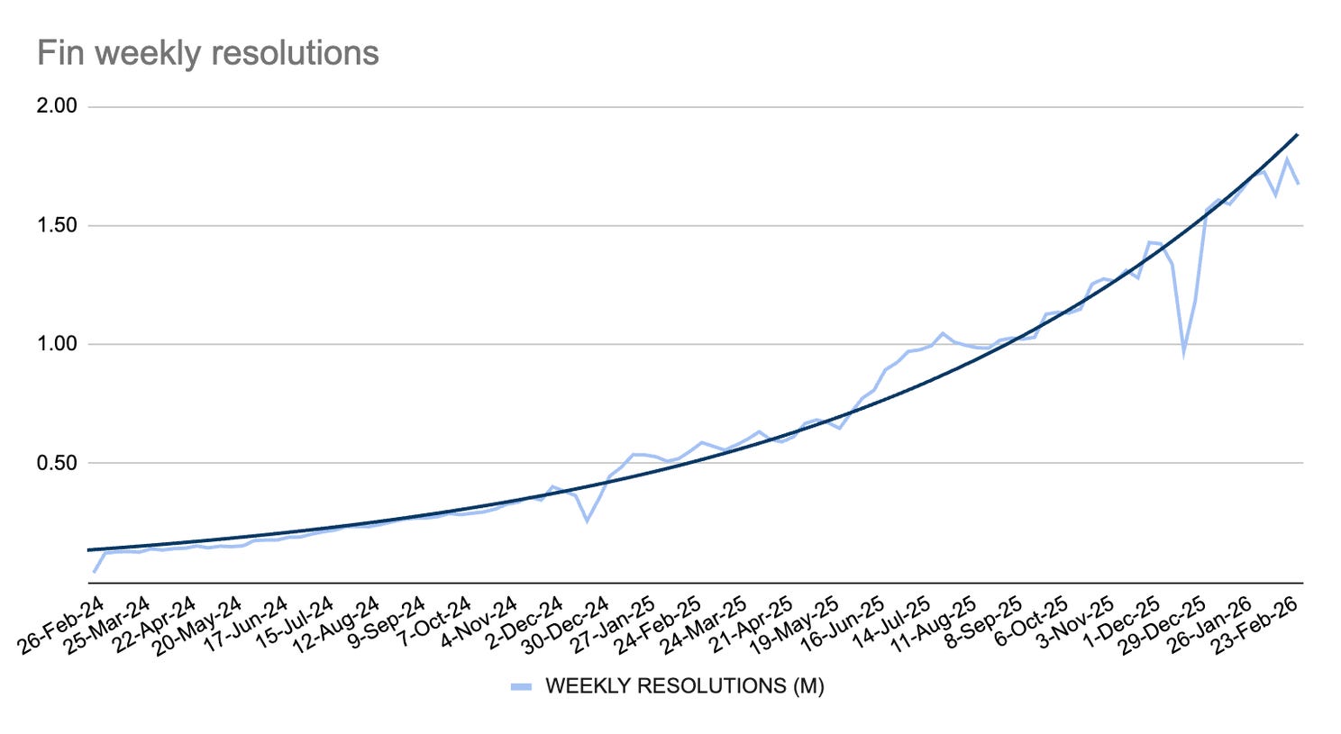Fin is the leading Service Agent product by any interesting metric. Customer count (8k), average resolution rate (67%), revenue (approaching $100M). Our average win rate against all ~three dozen competitors is in the 70s. And the most impressive brands in the world, like Anthropic, Snowflake, and Polymarket, run on Fin.