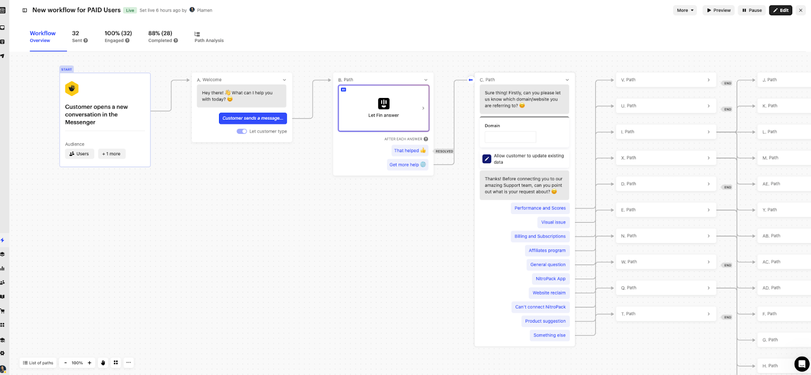 We designed Fin to blend deterministic and generative workflows. This makes it easy for many to incorporate Fin into their existing workflows as a first step. We encourage customers to rethink their whole setup, but sometimes this is the best way to get started.